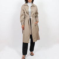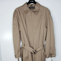 BNWT SS19 ANDREW COIMBRA RAGLAN TRENCH COAT L SIZE L, MADE IN CANADA. BRAND NEW WITH STORE TAGS. Knee-length jacket with raglan sleeves Zipper closure at centre front Adjustable wrist straps at sleeve cuffs with shiny gunmetal buckle Adjustable belt strap at waist with shiny gunmetal buckle Welt pockets 97% cotton, 3% elastane 100% bemberg lining Chest 20.87 in 53 cm Length 46.06 in 117 cm