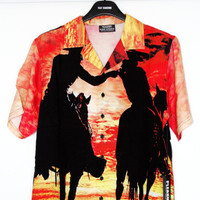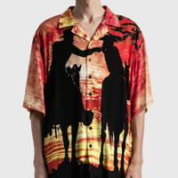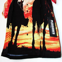 BNWT SS21 PLEASURES x NEW ORDER "REGRET" SHIRT S SIZE S, MADE IN CHINA. BRAND NEW WITH TAGS. Pleasures x New Order collaborative collection Short sleeve Relaxed fit Spread collar Front button closure All-over sunset graphic prints Color: Red Material: 100% Rayon Chest 20.08 in 51 cm Length 27.56 in 70 cm Shoulders 17.72 in 45 cm Sleeve Length 9.45 in 24 cm