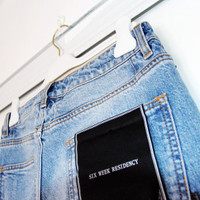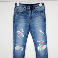 BNWT SS21 SIX WEEK RESIDENCY ULTRA SKINNY JEANS 32 SIZE 32, MADE IN CHINA. BRAND NEW WITH STORE TAG. Threadbare distressing with a cool tie-dye pattern adds a groovy spin to these ultraskinny jeans shaped from faded stretch denim. 34" inseam; 6" leg opening; 11" front rise; 14" back rise (size 32) Zip fly with button closure Five-pocket style 99% cotton, 1% elastane Waist 30.71 in 78 cm Inseam 34.25 in 87 cm Leg Opening 6.1 in 15.5 cm Front Rise 10.63 in 27 cm Thigh 10.24 in 26 cm
