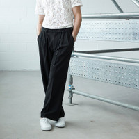 BNWT SS23 KNOCK SEOUL CASUAL PANTS M SIZE M, MADE IN KOREA. BRAND NEW WITH STORE TAG. An amplified retro style in an elegant monochrome twill Wide leg Flat pleats at the waist Stretch polyester fabric 93% POLYESTER 7% SPANDEX. Inseam 29 in 73.7 cm