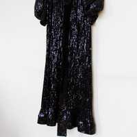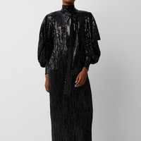 BNWT AW23 DENIS GAGNON SEQUIN DRESS S SIZE S, MADE IN CANADA. BRAND NEW WITH TAGS. This dress by Denis Gagnon features the fabulous sparkle of delicate blue sequins and a gorgeous drape. The Quebec designer presents a stunning and beautifully chic creation in a flowing weave that is dramatically gathered at the bottom, echoing the expressive and voluminous puff sleeves. The stand collar has a scarf you can tie to suit your mood. A chic, eccentric, and creative piece by Denis Gagnon. Sequined polyester weave, silky lining Straight fit Tie neck Concealed zip at the back of the neck Puff sleeves with elastic cuffs Centre vent behind Length: 56.00" (142.0 cm), from the top of the shoulder Composition Main material 95% polyester 5% elastane Lining 100% viscose
