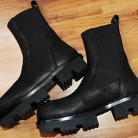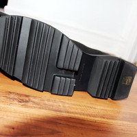 BNWT AW20 RICK OWENS "PERFORMA" LWN BOZO MEGATOOTH BOOTS 45 SIZE 45, MADE IN ITALY. BRAND NEW WITH ORIGINAL BOX. The Bozo Megatooth boots are an exclusive design from Rick Owens' collection, the Performa FW20. They have an avant-garde look achieved with a high cane silhouette and genuine cow and calf leather. They are fitted with elastic panels on the sides of the ankle to provide quick access and come with a toothed sole, divided into five segments, which ensures a firm and stylish footstep. In addition, they have an ingenious texture on the whole exterior inspired by cat scratches. Leather upper Elastic fastening Leather lining Rubber sole Pull tab loop Composition Upper: 100% Calf leather - Sole: 100% Rubber