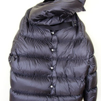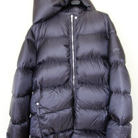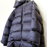 BNWT AW23 RICK OWENS "LUXOR" MOUNTAIN JKT COAT 52 SIZE 52, MADE IN ITALY. BRAND NEW WITH TAGS. Rick Owens FW23 Luxor men's scarf detail puffer jacket in black. This jacket features a scarf-like high neckline and oversized, quilted design. - Scarf like neckline with stud button closure - Front zip closure - Long sleeves - Quilted - Down and feather fill - Webbing strap across back yoke - Stud button details on back - Materials: nylon and polyamide