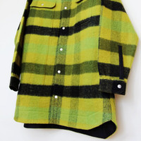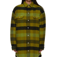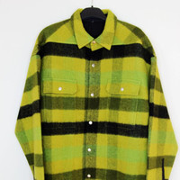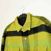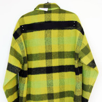 BNWT AW23 RICK OWENS "LUXOR" OVERSIZED OUTERSHIRT 40 SIZE 40 (OVERSIZED, FITS LIKE MENS EU 50-52), MADE IN ITALY. BRAND NEW WITH STORE TAG. RICK OWENS FW23 LUXOR OVERSIZED OUTERSHIRT IN ACID BOILED WOOL PLAID. THIS OVERSIZED OUTERSHIRT IS MID-THIGH LENGTH WITH AN OVERSIZED BOXY FIT. IT HAS A CENTRE FRONT OPENING WITH VISIBLE SNAP CLOSURES, A CLASSIC SHIRT COLLAR, TWO CHEST FLAP POCKETS WITH SNAPS, SNAP CUFFS AND DOUBLE TOPSTITCHING. IT FEATURES THE SIGNATURE LEVEL SHOULDER SEAMS, SLIGHTLY BEVELED SIDE HEM AND HAS A COTTON WEBBING STRAP WITH RIVET DETAIL ON THE BACK YOKE. IT IS UNLINED AND HAS TWO INTERNAL ZIPPERED POCKETS. IT IS UNLINED AND HAS TWO INTERNAL ZIPPERED POCKETS. THIS HEAVYWEIGHT PURE WOOL FABRIC IS WOVEN ON A DOUBLE WARP IN ORDER TO ACHIEVE ITS HEAVINESS AND CREATE A DOUBLE-FACED FABRIC. THE COLOR COMBINATION IS CREATED BY DYEING THE WOOL YARNS INDIVIDUALLY INTO FOUR DIFFERENT COLORS AND WEAVING THEM TOGETHER IN A SQUARE PLAID PATTERN. THIS FABRIC IS MADE FROM RWS CERTIFIED VIRGIN WOOL WHICH ENSURES A HIGH STANDARD IN ANIMAL WELFARE, ENVIRONMENTAL SUSTAINABILITY AND SOCIAL RESPONSIBILITY. EACH BALE OF WOOL IS TRACEABLE BACK TO ITS SOURCE. * MATERIAL: 100% NEW WOOL * YOKE LINING 100% COTTON * INSIDE POCKETS 97% COTTON + 3% ELASTANE