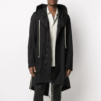 BNWT SS21 RICK OWENS "PHLEGETHON" BAUHAUS PARKA 48 SIZE 48 (FITS OVERSIZED, MORE LIKE EU52), MADE IN MOLDOVA. BRAND NEW WITH STORE TAG. RICK OWENS SS21 PHLEGETHON BAUHAUS PARKA IN HEAVY COTTON POPLIN. THIS BAUHAUS PARKA HAS A BELOW-THE-HIP LENGTH, A SLIGHTLY OVERSIZED FIT, A CENTER ZIPPER CLOSURE THAT IS COVERED BY A FRONT PANEL WITH BLACK SNAPS, DRAWSTRING HOOD, ROUNDED BAUHAUS POCKETS AND A FISHTAIL HEMLINE WITH DRAWSTRINGS. ALL HARDWARE IS BLACK. THIS MATERIAL IS FROM A LOCAL ITALIAN MILL THAT WAS FOUNDED IN 1597. A CORE MATERIAL FOR THE RICK OWENS COLLECTIONS. A CRISP HEAVYWEIGHT POPLIN. THIS MATERIAL IS WOVEN FROM GOTS CERTIFIED ORGANIC COTTON. IT IS AN EXCLUSIVE QUALITY FOR RICK OWENS. ORGANIC COTTON IS GROWN WITHOUT HARMFUL CHEMICALS, LEAVING THE SOIL, AIR AND WATER FREE FROM CONTAMINATES THAT CAUSE HARM. ORGANIC COTTON PRODUCES AROUND 46% LESS CO2E COMPARED TO CONVENTIONAL COTTON. IT ALSO USES LESS WATER TO GROW SINCE ORGANIC COTTON GROWERS TYPICALLY UTILIZE RAIN FAR MORE THAN IRRIGATION. ORGANIC COTTON GROWERS USE BENEFICIAL INSECTS TO CONTROL UNWANTED PESTS INSTEAD OF RELYING ON HARMFUL CHEMICALS, THUS ENCOURAGING ECOLOGICAL BIODIVERSITY. GOTS CERTIFICATION HELPS TO PROTECT THE EARTH’S ECOSYSTEM, REDUCES WASTAGE OF WATER AND ENSURES A BENEFICIAL AND SAFE WORKING ENVIRONMENT FOR FARMERS AND MANUFACTURERS. cotton-blend slouchy drawstring hood front press-stud fastening internal drawstring fastening waist two side zip-fastening pockets long sleeves drawstring hem h