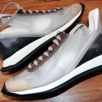 BNWT SS21 RICK OWENS "PHLEGETHON" PHLEG TRANSPARENT RUNNER 40 SIZE 40, MADE IN ITALY. BRAND NEW WITH ORIGINAL BOX, DUST BAG. The material mix with transparent inserts emphasizes the exclusive appearance of the sneakers from premium label Rick Owens. Visually, the sporty claim is created with the shapely sole and the eye-catching heel. In combination with urban casual looks, the designer pieces convince as cool styling items. Rick Owens men's trainers Robust material Extravagant design Shapely and profiled sole Perforations on the cap Transparent inserts Heel Height: Shaft height: 11 cm Color: medium gray