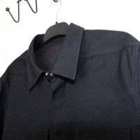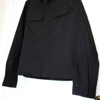 BNWT SS24 RICK OWENS "LIDO" CROPPED OUTERSHIRT 52 SIZE 52, MADE IN ITALY. BRAND NEW WITH TAGS. RICK OWENS SS24 LIDO CROPPED OUTERSHIRT IN SMOKE RECYCLED POLYESTER TWILL. THIS CROPPED OUTERSHIRT IS WAIST-LENGTH WITH A BOXY FIT. IT HAS A CENTRE FRONT OPENING WITH VISIBLE SNAP CLOSURES, A CLASSIC SHIRT COLLAR, BEVELED SIDE SEAMS, SNAP CUFFS AND DOUBLE TOPSTITCHING. IT FEATURES TWO SQUARE CHEST POCKETS WITH BEVELED FLAPS, SIGNATURE LEVEL SHOULDER SEAMS AND A COTTON WEBBING STRAP WITH RIVET DETAIL ON THE BACK YOKE. THIS ITEM IS PART OF THE RICK OWENS BONOTTO CAPSULE COLLECTION AND FEATURES A SIGNATURE LABEL ON THE INTERIOR. THIS MEDIUM WEIGHT TECHNICAL TWILL IS COMPACTLY WOVEN AND HAS A SOFT, SLIGHTLY BRUSHED FINISH. IT IS WOVEN FROM CERTIFIED RECYCLED POLYESTER WHICH ENSURES A REDUCTION IN WATER CONSUMPTION, EMISSIONS AND HAZARDOUS WASTE, LESSENING THE DEPENDENCE ON NON-RENEWABLE RESOURCES. THIS FABRIC WAS WOVEN ON A 1950’S VINTAGE SHUTTLE LOOM BY BONOTTO, A 4TH GENERATION TEXTILE MILL FOUNDED IN 1912 SITUATED JUST BELOW THE PREALPS IN VENETO, ITALY. MATERIAL: 100% POLYESTER YOKE LINING 100% COTTON