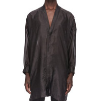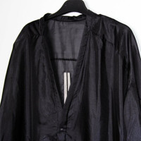 BNWT SS24 RICK OWENS "LIDO" MINIMAL LARRY SHIRT 48 SIZE 48, MADE IN ITALY. BRAND NEW WITH TAGS. RICK OWENS SS24 LIDO MINIMAL LARRY SHIRT IN BLACK WASHED SILK HABOTAI THIS MINIMAL LARRY SHIRT IS MID-THIGH LENGTH WITH LONG SLEEVES THAT FINISH JUST ABOVE THE WRIST AND HAVE CONCEALED SNAP CUFFS. IT HAS A DEEP V NECK WITH CONCEALED SNAP CLOSURES. IT HAS LEVEL SHOULDER SEAMS, A BACK YOKE AND SEAM RUNNING DOWN THE CENTRE BACK SPINE. THIS LIGHTWEIGHT AND FLUID SILK HABOTAI HAS A SOFT HANDFEEL AND WASHED FINISH. IT IS WOVEN IN THE COMO REGION OF ITALY KNOWN FOR ITS HERITAGE OF SILK PRODUCTION. MATERIAL: 100% SILK