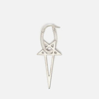 BNWT SS24 RICK OWENS "LIDO" PENTAGRAM EARRING ONE SIZE, MADE IN ITALY. BRAND NEW WITH ONLY BRANDED POUCH, AND BOX. Emblematic iconography of the Californian label's new collection, the pentagram adorns this brushed sterling silver earring. This geometric and angular earring will be a bold and decidedly gothic addition for your outfits. 925 sterling silver Hinged post closure and hook for pierced ears Earring sold individually Length: 38 mm Length: 15 mm Composition 925 sterling silver