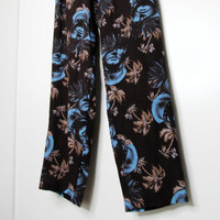 BNWT SS21 UNDERCOVER GRAPHIC PRINT BLACK BASE PANTS 2 SIZE 2, MADE IN JAPAN. BRAND NEW WITH TAGS. UNDERCOVER's creative director, Jun Takahashi, describes the brand's style as 'cute but scary, beautiful but ugly' and these straight-leg trousers are no exception. From the Japanese label's SS21 collection, they've been cut from lightweight rayon and finished with a thought-provoking palm tree and statue print. palm tree print straight leg elasticated waistband rear patch pocket two side inset pockets 100% RAYON WAIST WITHOUT STRETCHING 72CM STRETCHED 96CM