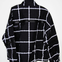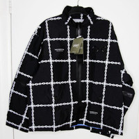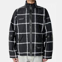 BNWT SS24 UNDERCOVER CHAIN BLOUSON JACKET 3 SIZE 3, MADE IN JAPAN. BRAND NEW WITH TAGS. This modern and creative jacket from the Jun Takahashi spring/summer collection is a master class in graphic elegance. It's made of lightweight, waterproof nylon fabric to keep you dry and features a contrasting white-on-black checkered chain print. The well-crafted utility details, including detachable sleeves, add an impeccable touch of functional elegance to this Undercover design. Lightweight and crisp waterproof nylon fabric Stand-up collar Full-length zip Buttoned flap pockets Detachable sleeves Zippered opening at the back Adjustable button plackets at the waist Metallic rings at the front Composition 100% nylon