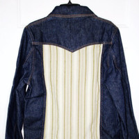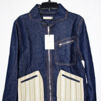 BNWT AW22 WALES BONNER MILES DENIM JACKET 48 SIZE 48, MADE IN MOROCCO. BRAND NEW WITH TAGS. Focusing on identity and representation, Grace Wales Bonner thoughtfully approaches her namesake brand from a theoretical angle, creating standout collections rich in narrative, culture and beauty. The Miles Denim Jacket is crafted from cotton in a denim weave, featuring a classic collar, front zip fastening, chest zip pocket and contrast panels. Cotton in a denim weave Classic collar Front zip fastening Chest zip pocket Side welt pockets Contrast panels 100% Cotton. Machine wash cold MATCHING JEANS AVAILABLE.
