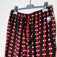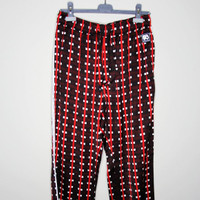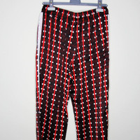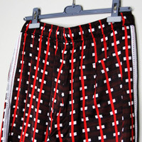 BNWT AW23 WALES BONNER SNARE PANTS 50 SIZE 50, MADE IN POLAND. BRAND NEW WITH TAGS. brown/red/light beige all-over graphic print side stripe detailing lace detailing logo patch to the front elasticated drawstring waistband two side slit pockets rear patch pocket tapered leg Composition Polyester 100%, Viscose 100% WAIST WITHOUT STRETCHING 73CM STRETCHED 86CM