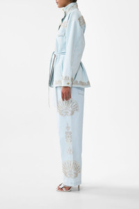 The Denim Alika Istanbul Alchemy High Neck Jacket is a handcrafted cotton silhouette designed by our in house artisans. Reimagined in an exclusive limited edition print, our denim jacket is relaxed fitting and features a high neckline. Decorated with intricately applied crystal embellishments, it's finished with functional pockets and a removable belt tie for styling versatility. - 100% Cotton - Relaxed Fit - High Neck - Removable Belt Tie - Functional Pockets SKU 00041106-DENIM-XXS Size and Fit Our model is 5'10 (178cm) tall and wears a size S (AU 10). Bust: 40in (101.6cm) Waist: 26.5in (67cm) Hips: 38in (96.5cm) Fabric and Care 100% COTTON Crafted from sustainable cotton and natural fibres, CAMILLA Denim is sourced from by our certified family-run fabric mill in Turkiye, the denim capital of the world. Each luxury denim silhouette is masterfully cut and embellished by our manufacturer in Istanbul, which has a storied 60-year history of fine denim artistry.