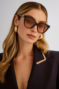 The Chocolate / Leopard All Aboard Sunglasses is a handcrafted accessory designed by our in house artisans. Reimagined in an exclusive limited edition style, these luxury sunglasses are an oversized cat-eye frame, crafted from rich acetate for a bold, opulent finish. Featuring wide temples and statement CF badge hardware on each side, this style is finished in a chocolate and leopard frame with brown gradient lenses. They come packaged in a CAMILLA printed hardcase with matching cleaning cloth. - 100% Acetate - Oversized Cat Eye Featuring Wide Acetate Temples For A Oppulent Look And Feel. - Packaged In Camilla Printed Hardcase And Cleaning Cloth - Frame Size: 55-16-140 - Finished In A Chocolate And Leopard Frame With Brown Gradient Lenses. - Cf Badge Hardware On Both Temples. SKU 00041158-CHOCLEO-O/S Fabric and Care MAIN: 100% ACETATE
