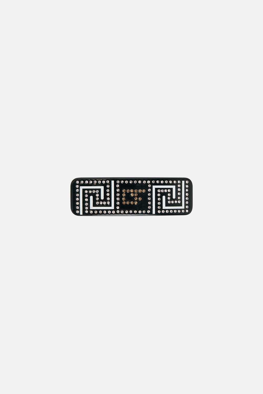 Designed in Australia, The Temples of Dendara Barrette Hair Clasp features borders and hieroglyphs, drawn from the sacred Temple of Dendara, enriched with bespoke CAMILLA motifs and divine representations of Hathor and her celestial consort, Horus. Lovingly handcrafted, this hair clasp is a testament to elegance and luxury. Crafted from premium French acetate, it features sparkling crystal embellishments and a glossy finish that exudes sophistication. Elevate your ensemble with a touch of refined glamour and meticulous craftsmanship. - CAMILLA Printed - French Acetate - Crystals Embellishment - Glossy Finish SKU 00032801-TEMPDEND-O/S Size and Fit Our model wears a CAMILLA O/S and is 5'10 (178cm) tall. Her standard dress size is an AU 10. She has a 32in (83cm) bust, 35in (89.5cm) hips and a 25in (66cm) waist. Fabric and Care MAIN: 100% ACETATE