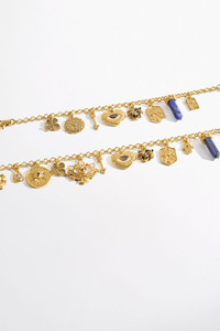 The Gold Bohemian Babylon Charm Necklace is a handcrafted accessory designed by our in house artisans. Our custom designed necklace is crafted with 18K gold plating, and is adorned with symbolic charms, enamel detailing and intricately applied gemstones. - 100% Metal Alloy - 18K Real Gold Plating - Solid Brass Base - Custom Design Inspired By Camilla - Real Cubic Zirconia - Enamel Detail SKU 00041062-GOLDSUNG-O/S Fabric and Care 70% BRASS, 10% SEMI-PRECIOUS STONE, 10% CUBIC ZIRCONIA, 10% SHELL