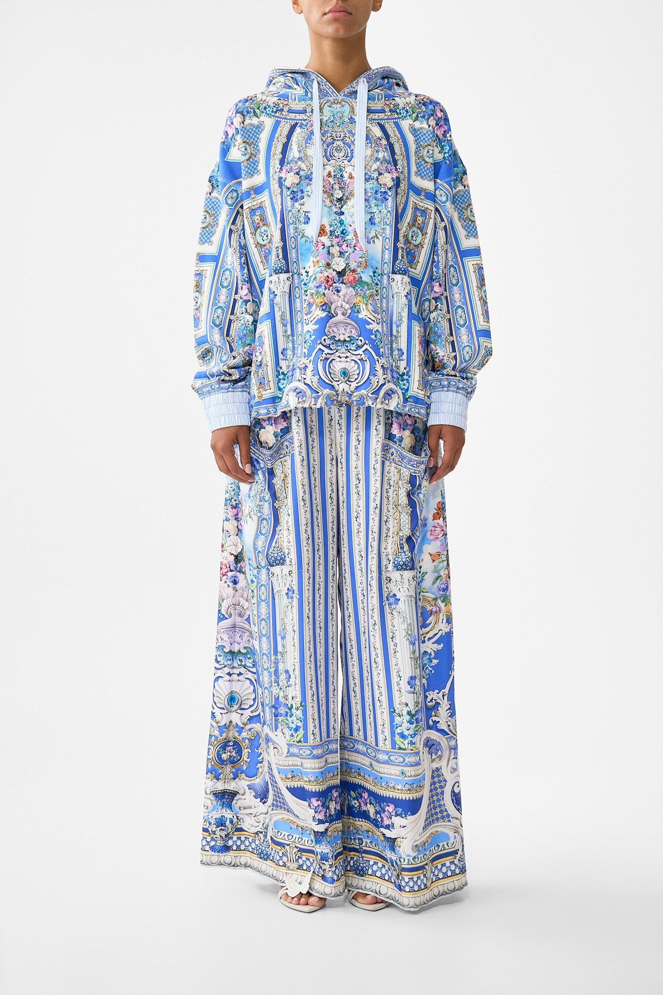 The Ottoman Opulence Contrast Band Oversized Hoodie With Pockets is a handcrafted silhouette designed by our in house artisans. Reimagined in an exclusive limited edition print, our luxurious hoodie is generously oversized and features silk-lined details for indulgent comfort. Functional pockets meet an elastic-encased hem and cuffs, blending form with fluidity. Finished with tassels adorned in signature CAMILLA charms, every detail whispers of opulence and intention. - Oversized Fit - Contrast Cotton Lined Hoodie And Drawstrings - Contrast Cotton Hem Band And Sleeve Cuff With Encased Elastic - Silk Crepe Lined Pocket Bags - Tassel Charms - Crystal Embellishment SKU 00039150-OTTOOPPU-XS Size and Fit Our model wears a CAMILLA O/S and is 5'10 (178cm) tall. Her standard dress size is an AU 10. She has a 32in (83cm) bust, 35in (89.5cm) hips and a 25in (66cm) waist. Designed as an oversized silhouette. Take your normal size, or select one size smaller for a neater fit. Fabric and Care SHELL-53% COTTON, 35% MODAL, 12% LYCRA. LINNING-100% SILK. CONTRAST-100% COTTON Designed as an oversized silhouette. Take your normal size, or select one size smaller for a neater fit.