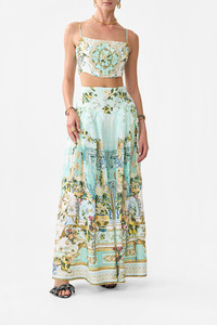 Designed in Australia, The Venus On A Vespa Corset Crop Top exudes placid blue skies amid ornate archways and gilded borders, a collection reimagining intricate illustrations by Lezio Lopez. Lovingly handcrafted, this corset crop top is a bold statement of modern luxury. A fitted design, crop length, exposed zip, and shirred back panel ensure a striking yet comfortable fit. - Fitted - Crop Length - Exposed Zip - Shirred Back Panel - Crystal Embellishment SKU 00037980-SICILYSL-XXS Fabric and Care 100% LINEN L-80% COTTON,20% SILK Linen is a lightweight natural fibre that offers a timeless aesthetic, adding durability and longevity to any wardrobe. Its breathability keeps your skin cool, minimises moisture and ensures effortless comfort.