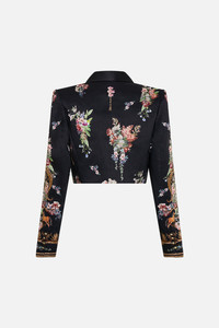 Designed in Australia, the Noble Endeavours Cropped Tailored Double Breasted Jacket embodies a white base fused with florals and golden arches, inspired by the arabesque opulence of the Palace of Queluz and its storied princess chambers. Lovingly handcrafted, this cropped tailored double-breasted jacket features a tailored fit with long sleeves and button detail. The cropped length adds a modern touch to its dramatic design. - Tailored Fit - Cropped Length - Double Breasted - Long Sleeve With Button Detail SKU 00034825-NOBLENDE-XS Size and Fit Our model wears a CAMILLA S and is 5'10 (178cm) tall. Her standard dress size is an AU 10. She has a 32in (83cm) bust, 35in (89.5cm) hips and a 25in (66cm) waist. Camilla S = AU10 / UK10 / US6 Fabric and Care 82% LINEN 18% SILK Silk Linen is a beautiful combination of natural fabrics which blend into a luxurious, soft and smooth texture. Cool to touch with a subtle sheen and luster from silk components, its breathable, durable and has a crisp, textured hand feel.
