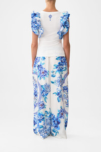 The A Ceramic Garden Double Frill Sleeve Tee is a handcrafted silhouette designed by our in house artisans. Reimagined in an exclusive limited edition print, this double frill sleeve tee is cut in a slim fit with a flattering rounded neckline. Ruffle sleeves trimmed with delicate scalloped edging add a touch of movement, while it's crystal embellishment brings luminous detail. - 100% Organic Cotton - Slim Fit - Ruffle Sleeves With Scallop Edging - Round Neckline - Crystal Embellishment SKU 00037235-CERAGARD-XXS Size and Fit Our model is 5'10 (178cm) tall and wears a size S (AU 10). Bust: 40in (101.6cm) Waist: 26.5in (67cm) Hips: 38in (96.5cm) Designed and fitted true to size, take your normal size. Fabric and Care 100% COTTON, CONST- 96% COTTON 4% ELASTANE Organic cotton is breathable, lightweight fabric. With a natural texture, it holds its shape gracefully and is perfect for soft, everyday silhouettes.