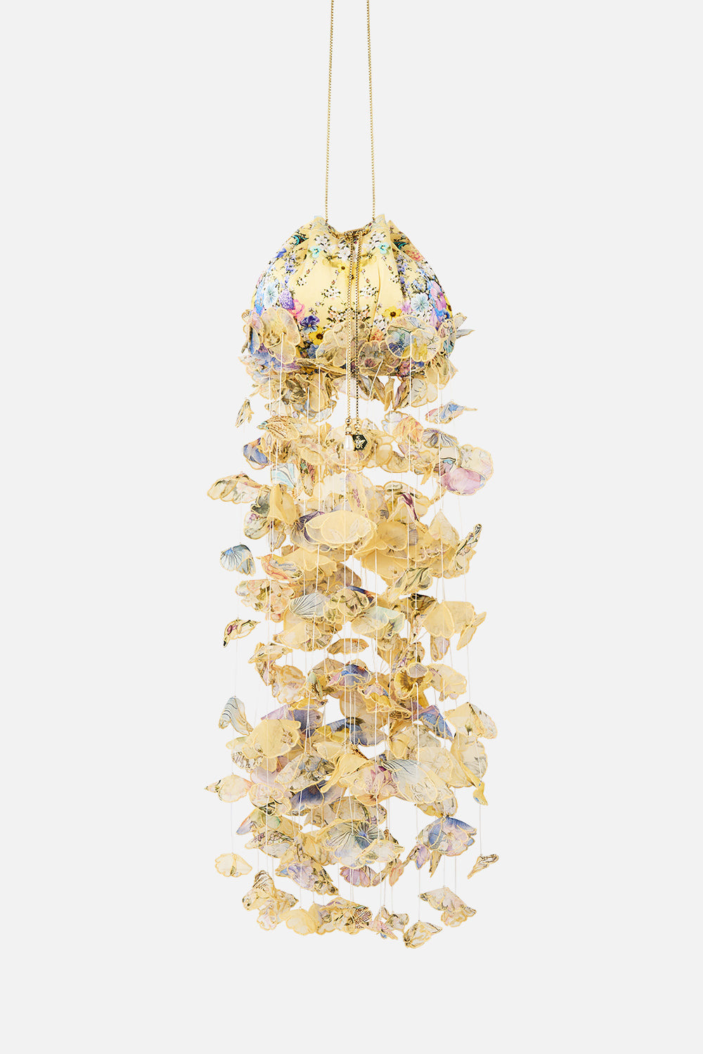 The Darling Buds Drawstring Pouch Bag With Floral Fringe is a handcrafted silk accessory designed by our in house artisans. Made from CAMILLA printed silk, our pouch features an intricately placed crystal encrusted exterior, soft quilted lining and a sleek box chain strap. A statement carryall crafted for luminous evenings and hands-free styling. - 100% Silk - Camilla Printed Silk - Crystals - Chain Strap - Tassels - Quilted Lining - 28Cm W X 18Cm H - Strap Drop 56Cm SKU 00039307-DARLBUDS-O/S Fabric and Care MAIN: 100% SILK
