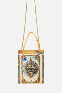 The House Of Horoscopes Embellished Mini Tote With Chain Strap is a handcrafted silk silhouette designed by our in house artisans. Reimagined in an exclusive limited edition print, this CAMILLA printed silk mini tote bag features an entirely embellished design for alluring, eye-catching detail. Its adorned with multiple straps including a delicate, chain cross body strap for styling versatility and is finished with a magnetic snap closure to keep your treasures safe. - 100% Silk - Fully Embellished - Mag Snap Closure - Chain Crossbody Strap - Camilla Printed Silk - Width 18cm X Height 22cm - Strap Drop 55Cm SKU 00037588-HOUSHORO-O/S Size and Fit Our model wears a CAMILLA O/S and is 5'10 (178cm) tall. Her standard dress size is an AU 10. She has a 32in (83cm) bust, 35in (89.5cm) hips and a 25in (66cm) waist. Fabric and Care MAIN: 100% SILK Silk satin embodies a sumptuously smooth finish that offers a rich buttery touch to the skin. As a result of the satin weaving technique, it masterfully creates a fuller bounce to the body and drape details.