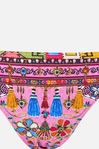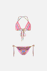 The Patchwork Panorama Embroidered Tri Bikini is a handcrafted silhouette designed by our in house artisans. Reimagined in an exclusive limited edition print, this bikini set is made with B to C cups in mind with adjustable cross over straps that tie at the back. Crochet embroidered cups offer artisanal texture, while it's ties are adorned with bespoke charm trims. The bottoms feature a regular rise and coverage with a softly dipped waistline, finished with delicate side ties embellished with charms. - To Fit B to C Cup - Tie Side Pant With Charms On Ties - Regular Leg Rise, Dip Waist, Moderate Coverage - Tie Back Bikini Top With Crossover Straps - Ties With Charm Trim Detail - Embroidered Cup Detail SKU 00037487-PATCPANO-XS Size and Fit Our model is 5'10 (178cm) tall and wears a size S (AU 10). Bust: 40in (101.6cm) Waist: 26.5in (67cm) Hips: 38in (96.5cm) Fabric and Care MAIN: 82% REGENERATED POLYAMIDE, 18% ELASTANE ECONYL is regenerated nylon, crafted from waste materials that would otherwise end up polluting our Mother Earth. Its beauty lies in its ability to be recycled, remoulded and ultimately reused time and time again. An infinitely recyclable product that keeps our planet looking beautiful, it opens the door to a circular fashion sphere.