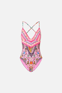 EMBROIDERED TRI ONE PIECE W TIE BACK