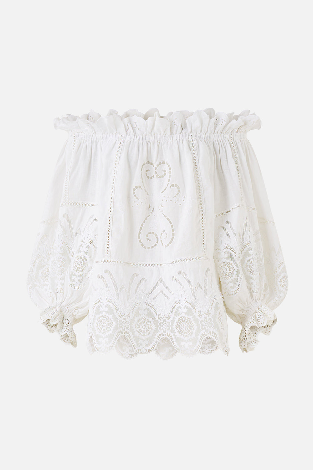 The All About That Lace Frill Off Shoulder Top is a handcrafted linen silhouette designed by our in house artisans. Reimagined in an exclusive limited edition print, this frill top sits off the shoulder, secured by a flexible, elasticated neckline and falls into a loose fit through the body for effortless wear. Its adorned with long full sleeves and decorated with intricately placed crystal embellishments for luminous detail. - 100% Linen - Off Shoulder - Full Sleeve - Elastic Neckline - Loose Body - Machine Embroidery SKU 00038373-ABOULACE-XXS Size and Fit Designed as an oversized silhouette. Take your normal size, or select one size smaller for a neater fit. Fabric and Care 100% LINEN Made from flax fibres, this lightweight natural fibre offers a timeless aesthetic that adds durability and longevity to any wardrobe. Its breathability keeps your skin cool, minimises moisture and ensures effortless comfort.