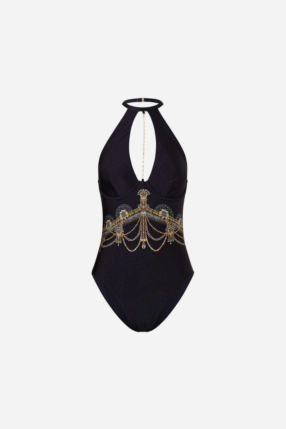 HIGH NECK HALTER UNDERWIRE ONE PIECE WITH CHAIN