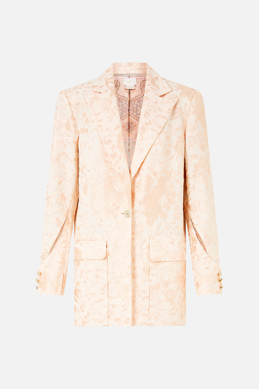 The Twilight In Istanbul Jacket With Sleeve Cut Out Detail is a handcrafted silhouette designed by our in house artisans. Reimagined in an exclusive limited edition print, this oversized jacket is adorned with an embroidered floral design and features a sleeve cut out detail for elevated versatility. Its single front button closure offers soft suiting structure and its complete with lining. - Relaxed Oversized Fit - Hip Length - Single Front Button Closure - Fully Lined - Embroidered Floral Design SKU 00039126-TWILISTA-XS Size and Fit Our model is 5'10 (178cm) tall and wears a size S (AU 10). Bust: 40in (101.6cm) Waist: 26.5in (67cm) Hips: 38in (96.5cm) Fabric and Care 100% VISCOSE