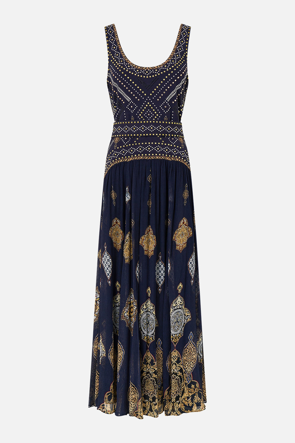The The Imperial Gate Jersey Tank Dress With Contrast Skirt is a handcrafted silk silhouette designed by our in house artisans. Reimagined in an exclusive limited edition print, our tank dress features a comfortable jersey bodice with a round neckline for a flattering form and fit. The contrast skirt is softly gathered for movement and contrast. Designed for ease of wear with a refined finish. - 100% Silk - Stretch Jersey Bodice - Silk Gathered Skirt - Long Length - Round Neckline SKU 00037901-IMPEGATE-XS Size and Fit Our model is 5'10 (178cm) tall and wears a size S (AU 10). Bust: 40in (101.6cm) Waist: 26.5in (67cm) Hips: 38in (96.5cm) Designed and fitted true to size, take your normal size. Fabric and Care SELF-100% SILK CONTRAST-95% COTTON PIMA, 5% SPANDEX LINING-100% SILK Silk crinkle chiffon is a sheer, lightweight fabric with a textured surface, crafted for a fluid drape with delicate stretch and a soft bounce.