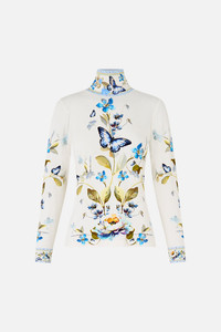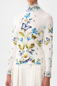 The Botanical Ballads Jersey Turtleneck is a handcrafted silhouette designed by our in house artisans. Reimagined in an exclusive limited edition print, our jersey turtleneck is sculpted by a soft structured neckline and long sleeves. It's finished with intricately placed crystal embellishment. - Slim Fit - Long Sleeve - Turtle Neck - Crystal Embellishment SKU 00039485-BOTABALL-XXS Size and Fit Our model is 5'10 (178cm) tall and wears a size S (AU 10). Bust: 40in (101.6cm) Waist: 26.5in (67cm) Hips: 38in (96.5cm) Fabric and Care 95% MODAL 5% SPANDEX Modal is a bio-based fabric made from beech tree cellulose and considered as an eco-friendly alternative to cotton as production requires 10-20 times less water. Modal is exquisitely soft to the touch, breathable and very durable due to the long fibres and tight weave.