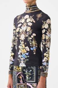 The Ottoman Elegance Jersey Turtleneck is a handcrafted silhouette designed by our in house artisans. Reimagined in an exclusive limited edition print, our jersey turtleneck is sculpted by a soft structured neckline and long sleeves. It's finished with intricately placed crystal embellishment. - Slim Fit - Long Sleeve - Turtle Neck - Crystal Embellishment SKU 00036707-OTTOELEG-XXS Size and Fit Our model is 5'10 (178cm) tall and wears a size S (AU 10). Bust: 40in (101.6cm) Waist: 26.5in (67cm) Hips: 38in (96.5cm) Fabric and Care 82% RECYCLED NYLON / 18% ELASTANE