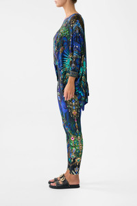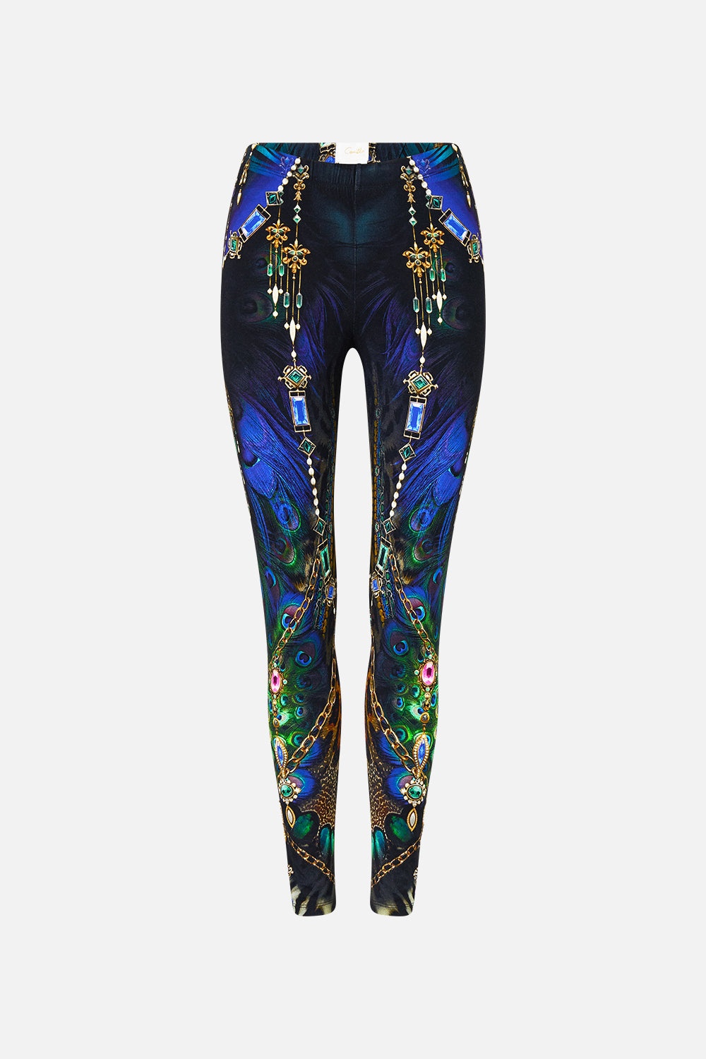 Designed in Australia, the Dominican Decadence Leggings unfolds in decadent plumes and iridescent blues, teal waves shimmer like glass, capturing the sparkle of forgotten monuments. These luxury leggings feature a fitted high waisted silhouette that falls to a slightly cropped length above the ankle. Perfect for layering with tunic tops oversized knitwear or everyday activewear opulence. - Fitted Legging - All Over Print - Crystal Embellishment - Elasticated Waist - Slim Fit SKU 00035100-DOMIDECA-XXS Size and Fit Designed and fitted true to size, take your normal size. Fabric and Care 87% MODAL 13% ELASTANE Modal is a bio-based fabric made from beech tree cellulose and considered as an eco-friendly alternative to cotton as production requires 10-20 times less water. Modal is exquisitely soft to the touch, breathable and very durable due to the long fibres and tight weave.