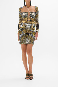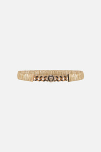Designed in Australia, The Gold Leopard Button Elastic Belt Moves through regal gold hues and embellishments. Lovingly handcrafted this belt is adorned with a leopard button chain detail, leather gilded elastic, and a gleaming gold clasp closure. This accessory embodies unmatched elegance and refined luxury. - Leopard Button Chain Detail - Gold Leather Covered Elastic - Gold Clasp Closure - - - SKU 00027840-GOLDSUNG-S Fabric and Care MAIN: 100% LEATHER
