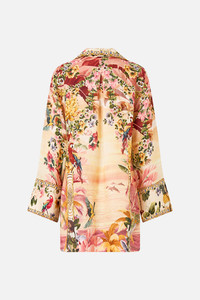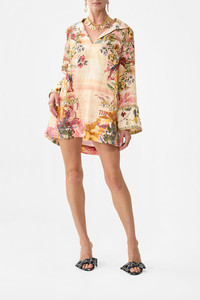 Designed in Australia, The Welcome To The White Lotus Long Sleeve Tunic Dress invites you to the CAMILLA x White Lotus Collaboration, where luscious sunset reveries and precious secrets collide in a decadent realm of mystery and wayfare. Lovingly handcrafted, tunic dress showcases a relaxed straight fit with a stylish short length. Its retro collar shape and deep V-neck add a touch of vintage charm, while the front patch pockets offer practical elegance. Adorned with crystal embellishments and featuring a button front closure, it combines classic sophistication with modern allure. - Relaxed Straight Fit - Short Length - Retro Collar Shape With Deep V Neck - Front Patch Pockets - Crystal Embellishment - Mini Length - Non-Sheer SKU 00037946-HAWAIISH-XS Size and Fit Designed as a relaxed fit, take your normal size or select one size smaller for a neater fit Fabric and Care 100%LINEN Linen is a lightweight natural fibre that offers a timeless aesthetic, adding durability and longevity to any wardrobe. Its breathability keeps your skin cool, minimises moisture and ensures effortless comfort.