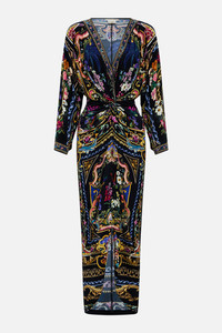 Designed in Australia, the Basked In Baroque Long Split Front Twist Dress celebrates the vivid contrasts of Igreja Matriz De Santa Maria. Painterly prints reflect its dynamic artistry, steeped in timeless energy and colour. Lovingly handcrafted, this CAMILLA jersey midi dress features a relaxed fit throughout the body with a twist drape detail upon the waist. The skirt skims the curves and tapers into a midi length slightly high low hemline with a curved front split for effortless charm. - Fitted Silhouette From Waist Down - Twist Knot Front Design Detail - Loose Sleeve - Front Split - Crystal Embellishment - SKU 00035122-BASKBARO-XXS Size and Fit Designed and fitted true to size, take your normal size. Fabric and Care 92% VISCOSE 8% ELASTANE Viscose is a fibre crafted from the natural substance, cellulose, known for its softness, breathability and drape. It possesses a subtle sheen and is perfect for lightweight soft tailored silhouettes or more structured styles in heavier weights.