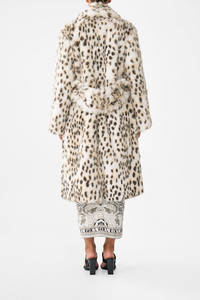 Designed in Australia, the Marble Heaven Long Teddy Coat dances between leopard prints and marble textures, patterns that glint with opulence, evoking whispers of lost artisans and their inspired creations. This luxury faux fur coat showcases a tailored shawl collar lapel upon a relaxed fitting mid-length silhouette. The relaxed sleeves fall to full length for effortlessly lavish layering. - Faux Fur - Long Length - Shawl Lapel - Martingale Belt SKU 00037815-MARBHEAV-XS Size and Fit Our model wears a CAMILLA S and is 5'10 (178cm) tall. Her standard dress size is an AU 10. She has a 32in (83cm) bust, 35in (89.5cm) hips and a 25in (66cm) waist. Camilla S = AU10 / UK10 / US6 Designed as a relaxed fit—take your normal size, or select one size smaller for a neater fit. Fabric and Care LADIES' 100% POLY COAT