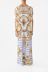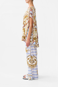 Designed in Australia, The Throne Games Loose Fit Tee welcomes you to the Palace of Queluz, where ornate rococo details and fine architectural artistry are framed by an elegant floral border. This luxurious loose-fit tee, featuring a graceful scoop neck and short sleeves, drapes with a relaxed elegance. Adorned with shimmering crystal embellishments, it effortlessly combines opulent sparkle with sublime comfort. - Scoop Neck - Short Sleeve - Relaxed Fit - Crystal Embellishment - Non-Sheer SKU 00033930-THRNGMES-XS Size and Fit Our model wears a CAMILLA S and is 5'10 (178cm) tall. Her standard dress size is an AU 10. She has a 32in (83cm) bust, 35in (89.5cm) hips and a 25in (66cm) waist. CAMILLA Size S = AU10 / UK10 / US6 Our More to Love Model wears a CAMILLA Size 3XL and is 5'9 (182cm) tall. Her standard dress size is a AU 20. She has a 42in (107cm) bust, 35.8in (91cm) waist and 46in (118cm) hips. CAMILLA Size 3XL = AU20 / UK20 / US16 Designed as a relaxed fit, take your normal size or select one size smaller for a neater fit Fabric and Care 92% MODAL 8% ELASTANE