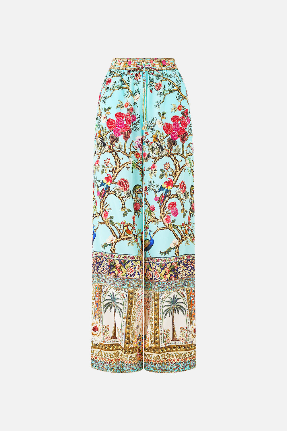 The Sultans And Queens Lounge Pant is a handcrafted silk silhouette designed by our in house artisans. Reimagined in an exclusive limited edition print, these full length lounge pants exude effortless wearability with a relaxed fit. An elasticated waistband falls into a flared leg before being finished with subtle side pockets. - 100% Silk - Relaxed Fit - Full Length - Subtle Flare Leg - Side Seam Pockets - Waist Ties With Camilla Tassel Charms SKU 00038697-SULTQUEN-XXS Size and Fit Our model is 5'10 (178cm) tall and wears a size S (AU 10). Bust: 40in (101.6cm) Waist: 26.5in (67cm) Hips: 38in (96.5cm) Designed as a relaxed fit. Take your normal size, or select one size smaller for a neater fit. Fabric and Care 100% SILK With its subtly textured surface, silk crepe is our core fabrication made perfect for versatile wear. With its ability to hold alternative ways to wear, this decadent fabric drapes elegantly off the body whilst keeping you cool with its breathable nature.