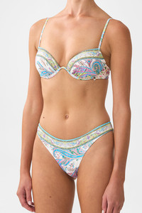 The Magic Carpet Ride Mini Regular Bikini Bottom is a handcrafted ECONYL silhouette designed by our in house artisans. Reimagined in an exclusive limited edition print, this bikini bottom is cut with a cheeky thin side design which offers a regular to low leg line and regular rise and moderate coverage. It features soft edges and is finished with intricately placed crystal embellishments for luminous detail. - High Leg - Moderate Bottom Coverage - Soft Edges - Regular Rise, Thin Sides - Regular To Low Leg Line - Crystal Embellishment SKU 00037502-WOVEWOND-XS Size and Fit Our model is 5'10 (178cm) tall and wears a size S (AU 10). Bust: 40in (101.6cm) Waist: 26.5in (67cm) Hips: 38in (96.5cm) 0 Fabric and Care MAIN: 82% REGENERATED POLYAMIDE, 18% ELASTANE ECONYL is regenerated nylon, crafted from waste materials that would otherwise end up polluting our Mother Earth. Its beauty lies in its ability to be recycled, remoulded and ultimately reused time and time again. An infinitely recyclable product that keeps our planet looking beautiful, it opens the door to a circular fashion sphere.