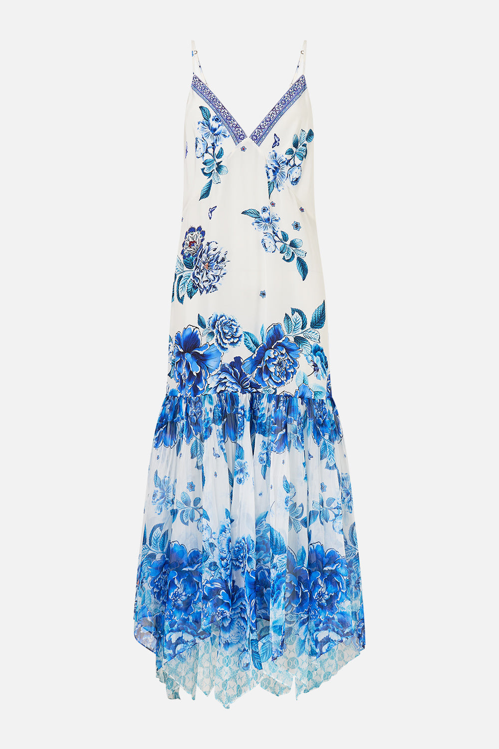 The A Ceramic Garden Minimal Slip With Pleated Chiffon Skirt is a handcrafted silhouette designed by our in house artisans. Reimagined in an exclusive limited edition print, our minimal slip dress is slim fitting around the bodice and cascades into a delicate, full length skirt. Elevated with a pleated chiffon skirt that dances just above ankle length, it's finished with adjustable straps for effortless wear. - 100% Silk - Relaxed Fit - Long Length - Adjustable Straps - Pleated Chiffon Skirt SKU 00037046-CERAGARD-XXS Size and Fit Our model is 5'10 (178cm) tall and wears a size S (AU 10). Bust: 40in (101.6cm) Waist: 26.5in (67cm) Hips: 38in (96.5cm) Designed as a relaxed silhouette. Take your normal size, or select one size smaller for a neater fit. Fabric and Care 100% SILK (CDC) With its subtly textured surface, silk crepe is our core fabrication made perfect for versatile wear. With its ability to hold alternative ways to wear, this decadent fabric drapes elegantly off the body whilst keeping you cool with its breathable nature.