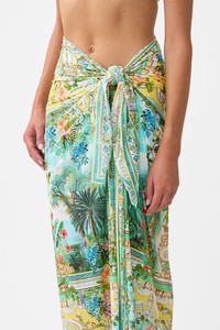 The Tales Of Topkapi Palace Multi Wear Long Sarong is a handcrafted silhouette designed by our in house artisans. Reimagined in an exclusive limited edition print, our multi wear sarong features an elevated maxi length complete with a relaxed fit. Draping effortlessly across the feminine form, seamlessly tie our shapeshifting style into bespoke and tailored silhouettes. - Long Length - Multiwear - Tie Opening - Swim Cover Up SKU 00037640-TALETOPI-O/S Size and Fit Our model wears a CAMILLA O/S and is 5'10 (178cm) tall. Her standard dress size is an AU 10. She has a 32in (83cm) bust, 35in (89.5cm) hips and a 25in (66cm) waist. Designed as a relaxed fit, take your normal size, or select one size smaller for a neater fit. Fabric and Care MAIN: 34% RECYCLED NYLON, 34% NYLON, 32% ELASTANE