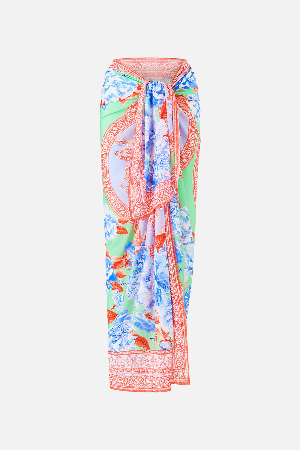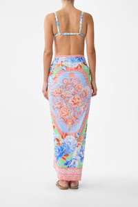 The Topkapi Pop Multi Wear Long Sarong is a handcrafted silhouette designed by our in house artisans. Reimagined in an exclusive limited edition print, our multi wear sarong features an elevated maxi length complete with a relaxed fit. Draping effortlessly across the feminine form, seamlessly tie our shapeshifting style into bespoke and tailored silhouettes. - Long Length - Multiwear - Tie Opening - Swim Cover Up - No Crystal Embellishment SKU 00041631-TOPKIPOP-O/S Size and Fit Our model wears a CAMILLA O/S and is 5'10 (178cm) tall. Her standard dress size is an AU 10. She has a 32in (83cm) bust, 35in (89.5cm) hips and a 25in (66cm) waist. Designed as a relaxed fit. Take your normal size, or select one size smaller for a neater fit. Fabric and Care MAIN: 34% RECYCLED NYLON, 34% NYLON, 32% ELASTANE
