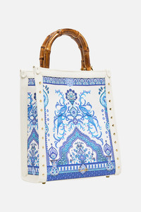 The Isnik Lullaby North South Tote is a handcrafted cotton accessory designed by our in house artisans. Reimagined in an exclusive limited edition print, our cotton canvas tote features leather look trims and a structured bamboo handle for natural texture. A detachable crossbody strap offers styling versatility: bold, practical and made to move with you. - 100% Cotton - Printed Canvas - Pu Leather Trims - Bamboo Handle - Detachable Crossbody Strap - 25cm X 28cm - Base 11cm SKU 00037579-ISNILULL-O/S Size and Fit Our model wears a CAMILLA O/S and is 5'10 (178cm) tall. Her standard dress size is an AU 10. She has a 32in (83cm) bust, 35in (89.5cm) hips and a 25in (66cm) waist. Fabric and Care MAIN: 100% COTTON