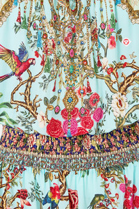 The Sultans And Queens Off Shoulder Short Dress is a handcrafted silk silhouette designed by our in house artisans. Reimagined in an exclusive limited edition print, our off the shoulder mini dress features a shirred waistband, neckline and cuffs for an adjustable, cinched fit. Feminine blouson sleeves and a flared hemline add soft volume, whilst crystal embellishments add subtle sparkle. - 100% Silk - Crystal Embellishment - Shirred Neckline, Waistband And Cuffs - Blouson Sleeve - Flared Hem SKU 00038522-SULTQUEN-XXS Size and Fit Our model is 5'10 (178cm) tall and wears a size S (AU 10). Bust: 40in (101.6cm) Waist: 26.5in (67cm) Hips: 38in (96.5cm) Designed as a relaxed fit. Take your normal size, or select one size smaller for a neater fit. Fabric and Care 100% SILK Designed as a relaxed fit. Take your normal size, or select one size smaller for a neater fit.