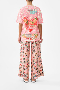 Designed in Australia, the Pink Porto Oversized Band Tee refines blossoming romance, floral gardens dance along pastel pink mosaics kissed with red touches. Lovingly handcrafted, this luxury graphic tee features a relaxed oversized fit throughout the body that falls to a slightly longer line silhouette. The timeless round neckline and relaxed short sleeves paired with a bespoke placement print embodies understated opulence. - Crystal Embellishment - Round Neckline - Oversized Fit - Short Sleeve - SKU 00035546-PINKPORT-XS Size and Fit Our model wears a CAMILLA S and is 5'10 (178cm) tall. Her standard dress size is an AU 10. She has a 32in (83cm) bust, 35in (89.5cm) hips and a 25in (66cm) waist. Camilla S = AU10 / UK10 / US6 Designed as a relaxed fit—take your normal size, or select one size smaller for a neater fit. Fabric and Care SHELL-'100% COTTON , CONST- 96% COTTON 4% SDPANDEX Organic cotton is breathable, lightweight fabric. With a natural texture, it holds its shape gracefully and is perfect for soft, everyday silhouettes.