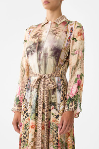 The Watercolour Wonderland Printed Trench is a handcrafted silk silhouette designed by our in house artisans. Reimagined in an exclusive limited edition print, our long printed trench features button front fastening for effortless wear. It's finished with a collar and adjustable tie belt details. - 100% Silk - Shirt Collar - Long Length - Front Button Fastening - Tie Belt SKU 00037014-WATEWOND-XS Fabric and Care 100% SILK WOVEN Silk satin embodies a sumptuously smooth finish that offers a rich buttery touch to the skin. As a result of the satin weaving technique, it masterfully creates a fuller bounce to the body and drape details.